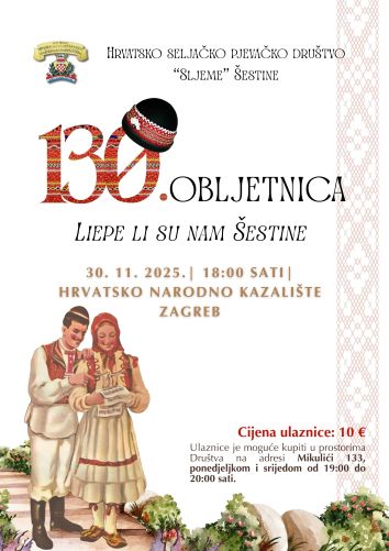 HSPD Sljeme Šestine organizira koncert i poziva sve ljubitelje glazbe da im se pridruže. Koncert će se održati 30.11.2025. u 18:00 u HNK Zagreb. Na programu će biti tradicionalni i popularni napjevi društva. Ulaz je slobodan, dođite i uživajte u glazbi!