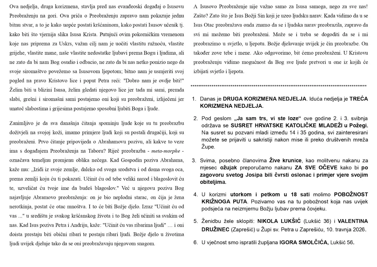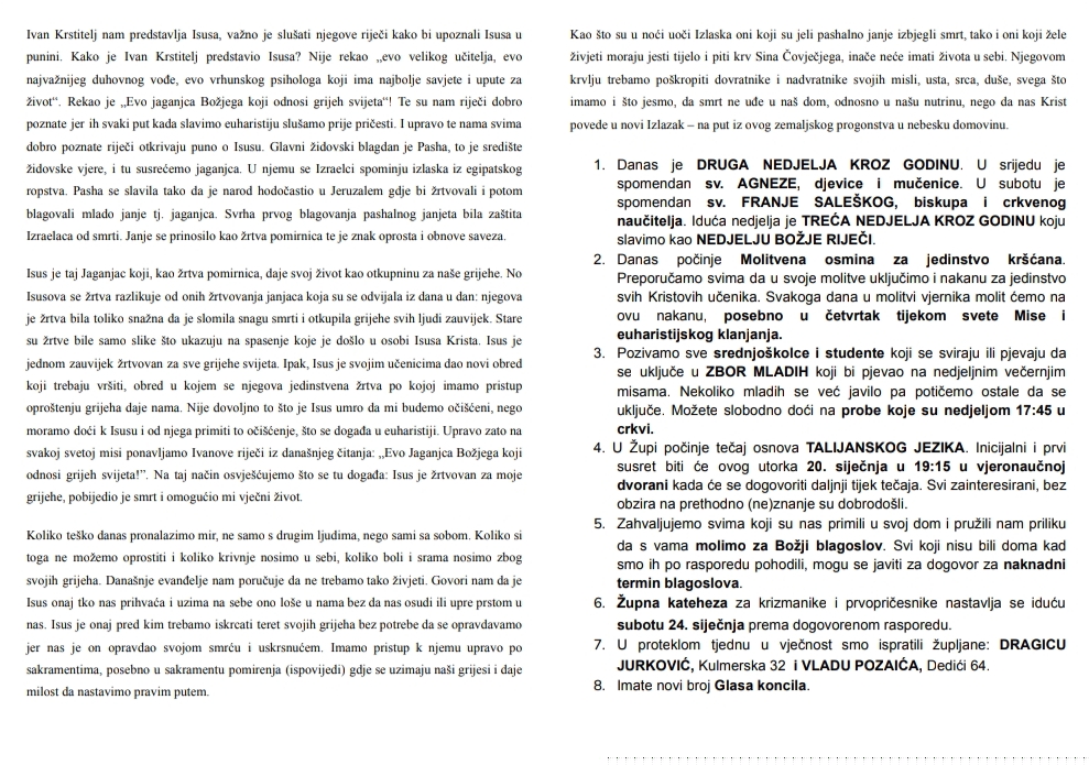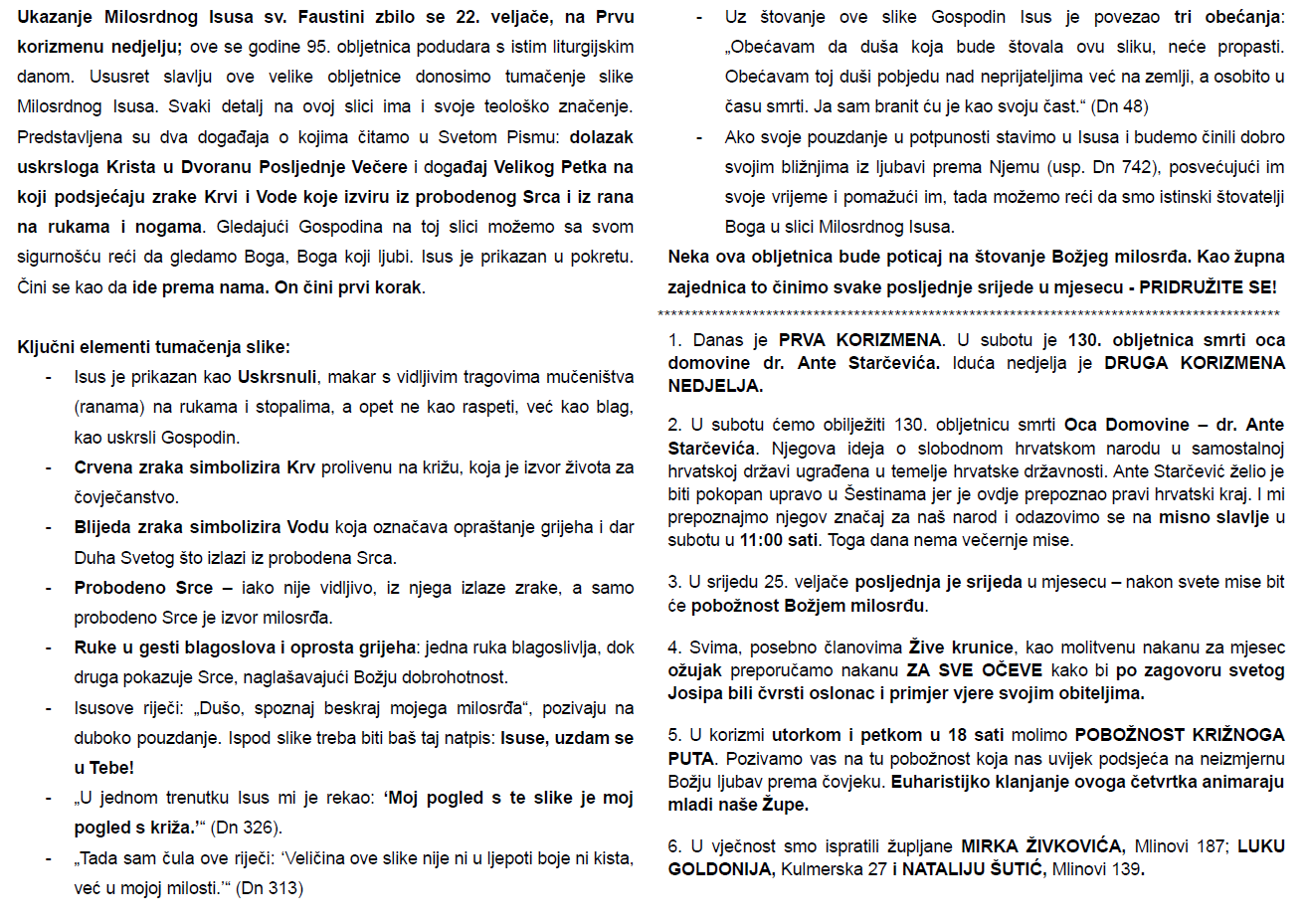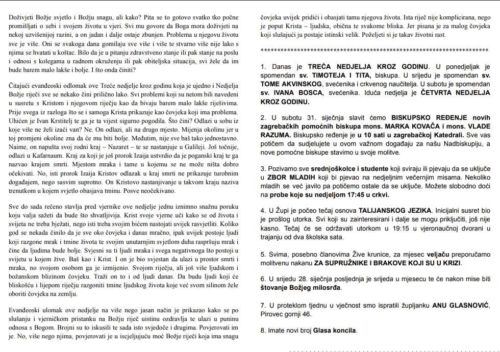 Ovdje možete pronaći župni listić s najvažnijim obavijestima vezanim za našu župu i tjednim kalendarom misnih nakana.